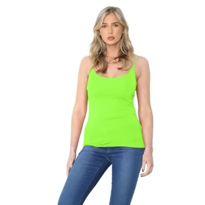 Hamishkane® Womens Plain Bodycon Cami Strappy Sleeveless Tank Tops, Slim Fitted Scoop Neck Vest Tops Women UK, Stretchy Gym Wear, Casual Summer Ladies Neon Green