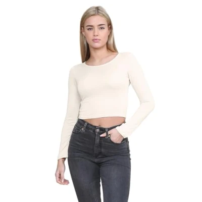 𝐒𝐥𝐞𝐞𝐤 𝐄𝐯𝐞𝐫𝐲𝐝𝐚𝐲 𝐅𝐢𝐭: Elevate your daily look with these womens long sleeve tops, featuring a timeless crew neckline, stretchy slim fit, and flattering cropped silhouette. These basic tops women serve as wardrobe essentials, ideal as long sleeve tops women, cropped tops for women uk, or fashionable womens going out tops 𝐂𝐨𝐦𝐟𝐨𝐫𝐭𝐚𝐛𝐥𝐞 & 𝐁𝐫𝐞𝐚𝐭𝐡𝐚𝐛𝐥𝐞: Made from a soft blend of 95% viscose 5% elastane, this lightweight women crop top is perfect for summer and layering in cooler months. These long sleeve summer tops women are ideal ladies summer tops and fitted tops for women uk, providing comfort all year round 𝐒𝐭𝐲𝐥𝐞 𝐓𝐡𝐚𝐭 𝐓𝐫𝐚𝐧𝐬𝐢𝐭𝐢𝐨𝐧𝐬 𝐄𝐚𝐬𝐢𝐥𝐲: From day to night, these womens crop tops adapt with ease. Pair these womens casual tops with jeans or dress them up as your go-to party top. These long sleeve crop tops for women are dependable staples in any going out tops for women uk or basic long sleeve tops collection 𝐄𝐯𝐞𝐫𝐲𝐝𝐚𝐲 𝐖𝐞𝐚𝐫, 𝐄𝐚𝐬𝐲 𝐂𝐚𝐫𝐞: This crew neck summer top is machine washable, wrinkle-resistant, and crafted to retain its fit and color for repeated wear. Perfect for anyone seeking low-maintenance basic tops and durable full sleeve tops for women that combine style with lasting quality 𝐅𝐢𝐭𝐬 & 𝐂𝐨𝐥𝐨𝐫𝐬 𝐓𝐡𝐚𝐭 𝐏𝐨𝐩: Offered in sizes 6–16, these crop tops for women uk come in a wide palette, everyday neutrals like black crop top, white, navy, and red, plus standout hues like pink crop top and neon green top. A perfect blend of fun and functionality for building your go-to women tops wardrobe