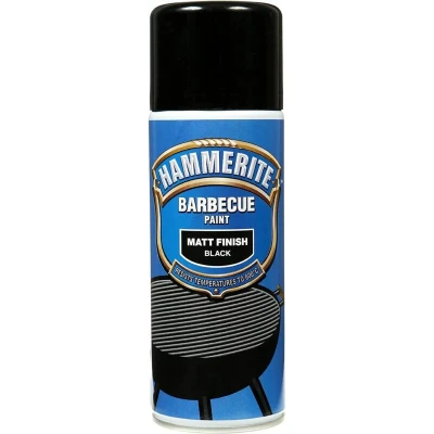 General description Hammerite Barbecue Paint is specially formulated for the exterior of metal barbecues, designed to restore and protect metal surfaces while extending the lifespan of your barbecue. This paint provides a beautiful matt coat that is exceptionally durable and resistant to fading caused by wind, sun, and rain. Technical specifications Resistant to heat up to 600°C Abrasion-resistant, crack and flake-proof finish Durable matte coating Coverage: 400ml covers up to 1 square metre Drying time: 30 minutes Repaintable after 15 minutes Compatibility and accessories Suitable for metal surfaces of barbecues and similar outdoor metal equipment. Installation Shake the aerosol can well before use Apply in a well-ventilated area, holding the can upright Spray evenly from a suitable distance for a smooth finish Usage Ensure the surface is clean, dry, and free of rust or grease before application No primer is required Allow the paint to dry quickly after application