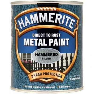 General description This is a high-quality, durable metal paint designed for use on various exterior and interior metal surfaces. It can be applied directly onto rusty metals without the need for primer or undercoat, saving time and effort. The paint forms a protective barrier that seals out moisture and provides long-lasting corrosion resistance. It features a subtle hammered finish with a metallic sheen, enhancing the appearance of metal surfaces. The paint is suitable for use on gates, railings, garden furniture, drainpipes, guttering, and other metal items. It dries quickly to touch within an hour and offers protection for up to 8 years. Technical specifications Finish: Hammered Color: Silver Size: 750ml Coverage: 5 sq m per litre Durability: Up to 8 years Touch dry: 1 hour Recoat time: After approximately 4 hours Compatibility and accessories Suitable for ferrous and non-ferrous metals, plastics, and wood Can be used on gates, railings, garden furniture, drainpipes, guttering,