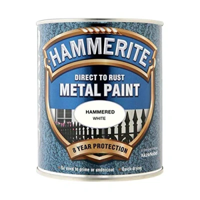 Amazon MarketplaceHammerite Metal Paint Hammered White Hammerite Direct To Rust Metal Paint can be painted directly onto rusty surfaces The special 3 in 1 means there is no need to use a primer or undercoat Suitable for use on a wide range of exterior metal including gates, railings, drainpipes, guttering and garden furniture 750ml Tin