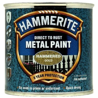 Hammerite Paint Direct to Rust Exterior Gold Metal Paint, Hammered Finish. Corrosion Resistant and Remover, 8 Year Protection 250ml Tin 1.25 SqM Coverage