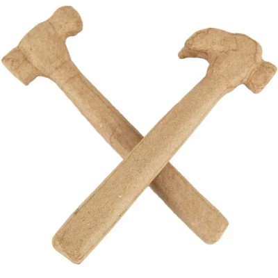 Hammers in Papier Mache Our own-brand range of biodegradable low-cost papier mache shapes (made from recycled waste products e.g. old newspapers cardboard etc) have been hand-made using 100% recycled materials and organic glue. The designs are supplied in a buff or manila colour ready to paint or decorate with acrylics inks poster paints stamps polymer clay foam clay decoupage (or Decopatch) papers napkins glitters embelishments beads and much more. Dimensions - 19.5cm x 6cm PACK OF 5 [2 different design Hammers in each pack = 10 Hammers in total]. ** We also sell a saw under product code CLP1112 CLP1113 MPN ED4386 A/B (ON)