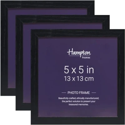 Hampton Frames OXFORD Picture Frames, 5x5 Inch (13x13cm), Black, Pack of 3, Acrylic Front Modern Display, Lightweight, Wall or Tabletop Use, Home Décor