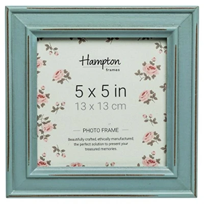 AmazonTimeless Display, Effortless Style; 5x5 inch light blue square frame with glass front enhances treasured photos; ideal for home or office décor needing a fresh, elegant accent; choose simplicity for lasting impact Versatile Placement, Your Way; freestanding or wall mounting in portrait or landscape suits any space; suitable for desks, shelves, or gallery walls; flexibility ensures your memories fit your environment Crafted for Character, Built to Last; distressed painted engineered wood adds charm and durability; use in modern, rustic, or shabby chic settings; construction preserves your favourite moments Easy Change, Secure Design; drop-in back with swivel clips and hanging loops enables swift photo updates; suitable for seasonal displays or children’s artwork; convenience meets peace of mind True-to-Size Fit, Hassle-Free; accommodates 13x13cm images accurately with 30mm wide, 17mm deep profile; suitable for square prints or Instagram snaps; precise sizing makes framing straightforward