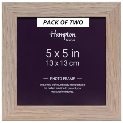 Hampton Frames SORBONNE 5x5 (13x13cm) Pack of 2 Oak Effect Picture Frame Acrylic (Non Glass) SOR55NGX 2PK