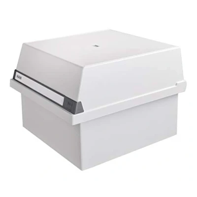 Ideal for intelligent information processing in high-quality finish. Particularly stable and proven. Card filing box A4 landscape, holds 1,300 cards, supplied with 2 support plates and sliding file clips. Practical additional function: during use the card filing box can be placed in the removable lid to save space. The large inscription label allows for easy reference. Non-slip rubber furniture protectors ensure a firm grip. Original HAN branded goods. Made in Germany.