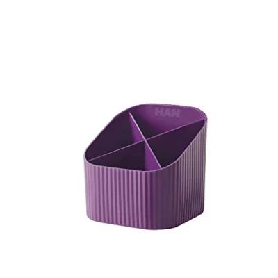 Re-X-LOOP combines a modern, functional design with resource-saving materials made from 100% recycled plastic. Expandable with many other items from the HAN Re-Loop series Whether in the office or at home, the Re X-LOOP desk quiver provides more space and order on the desk. Durable and stable thanks to high-quality premium quality The 4 different height compartments offer plenty of space for pens, brushes and other utensils. Lower edge front for easier access The pen holder made of durable plastic is easy to wipe clean and thus sets fresh accents on the desk even after a long time Box contents: 1 x HAN 17238-957, desk quiver Re-X-LOOP made from 100% recycled plastic. Original HAN branded product, protected by design. Made in Germany. Without contents. External dimensions (WxDxH): 111x111x105 mm. Colour: purple Made in Germany: HAN is one of the leading German brand manufacturers of organisational solutions for office and home and has been producing for over 65 years, partly still by hand, at its headquarters in Germany. Through sustainable production, trade and economy, we create and secure jobs with fair wages and salaries. SUSTAINABLE AND ENVIRONMENTALLY FRIENDLY: Our products are environmentally friendly and 100% recyclable in accordance with ISO 14021. We use 100% FSC certified woods to manufacture our wood products. This supports economically, socially and ecologically sustainable management of forests. In addition, the paints used are water-soluble and thus have a significantly higher environmental compatibility.