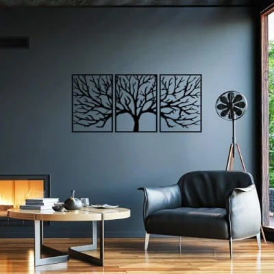 Crafted from 100% durable metal with a thickness of 1.5 mm, ensuring long-lasting quality and a sleek appearance. Generous size of 53 x 73 cm, featuring three distinct pieces that create a stunning visual impact on any wall. Easy to hang with a convenient mounting piece included, allowing for effortless installation in your home or office. Lightweight design at just 2.687 kg, making it easy to handle and reposition as needed without compromising stability. Elegant black color complements a variety of decor styles, adding a modern touch to your living space or workspace.