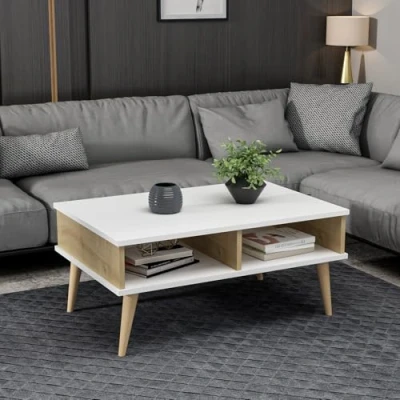 Hanah Home Stylish Coffee Table, White & Sapphire Oak, 90 x 60 41 cm, 100% Melamine Coated Particle Board, Modern Design for Living Room and Office