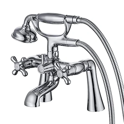 Premium Quality Material : Using G1/2" Ceramic Cartridge and all solid brass construction for durability and reliability. Corrosion resistant chrome finished Dual Functions : The spout is perfectly combined with telephone style hand shower, using the diverter handle to easily switch from the spout to handheld shower Hot&Cold Waterlines : 1/2” standard hoses design for better water flow (3/8” hoses can be made as required); Special hoses size can be made as required, please email us Cross Handles Design : Hot and cold cross handles can easily adjust the water’s temperature. Handheld Shower with 59.06” (150cm) shower hose are more convenient to use in the bathroom Easy Installation : 2 holes deck mounted clawfoot tub faucet can directly installed on the bathtub fixture. All mounting hardware needed to install included, Weight: 9.4 pounds, Manufacturer: Hanallx Sanitary Ware