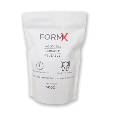 MOLDABLE, DURABLE, REUSABLE – FormX is a hand-moldable polymorph that softens at 60°C and hardens into a strong, reusable material in minutes. Just heat, shape, and reuse again and again. PERFECT FOR REPAIRS & PROTOTYPING – Fix broken parts, create custom tools, or prototype your ideas with ease. FormX is ideal for quick fixes and DIY projects. SAFE & EASY TO USE – Simply place the pellets in hot water until they turn clear and soft. Shape by hand, let cool, and it’s ready. No special tools required. 500G RESEALABLE PACK – Convenient size for hobbyists, makers, and professionals. Keep your pellets clean and dry between uses with the easy zip-seal pouch