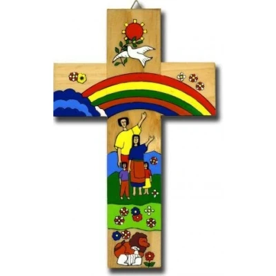 Hand Painted Cross 25cms. The Rainbow Cross. Colourful Crucifix.