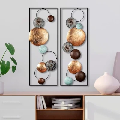 Hand Painted Decorative Metal Wall Accessory (2 Pieces), 32 x 92 4 cm, 100% Metal, Unique Colour Variations, Perfect for Home Decor & Art Display