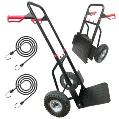 Hand Truck Trolley Foldable with 2x Big Industrial Wheels Heavy Duty Height Adjustable High Traction Quiet Wheels, 160kg Load Capacity (Includes 2 Elastic Straps)