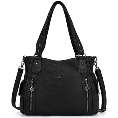 Handbags for Womens Top Handle Hobo Purse Roomy Casual Shoulder Bags PU Tote Satchel Womens, A black, L