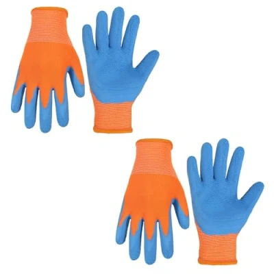 Soft & Comfortable Nitrile Coating: These kids gardening gloves feature a soft nitrile coating that provides comfort and protection while allowing kids to handle plants, soil, and tools with ease. Breathable & High Dexterity: Designed with seamless lining and stretchy fabric, these childrens work gloves are breathable and flexible, offering high dexterity for little hands to move freely. Snug Fit with Elastic Wrist Closure: The elastic knit wrist closure ensures a snug fit, keeping dirt and debris out while providing a secure and comfortable feel. Bright Colors & Cute Patterns: Available in bright colors and adorable patterns, these toddler gardening gloves are fun and appealing for kids, encouraging them to enjoy gardening and outdoor activities. 2-Pack Great Gift Idea: Includes 2 pairs of gloves, making it a perfect gift for kids who love gardening, outdoor play, or helping out in the yard. Five sizes options: Size S (fit for 2-4 years old), Size M (fit for 5-6 years old), Size L (fit for 7-8 years old), Size XL (fit for 9-10 years old), Size XXL (fit for 11-13 years old).