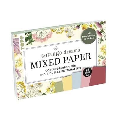 Handlettering Mixed Paper Block Cottage Dreams Gelb, Grün, Blau, Rosa, Rot A5: 75 feste Motivpapiere A5 in 5 Cottagefarben. Mit Grundkurs