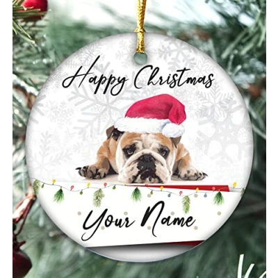 Handmade personalised Dogs Christmas Bauble Puppy Pet Xmas Gift Tree Decoration (Bulldog)