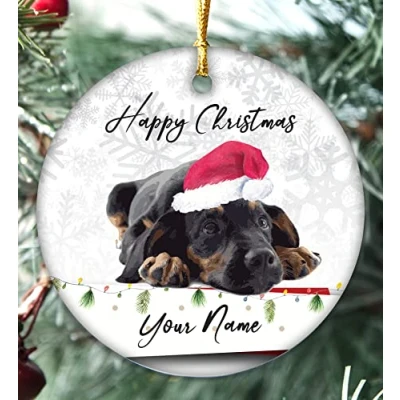 Handmade personalised Dogs Christmas Bauble Puppy Pet Xmas Gift Tree Decoration (Doberman)