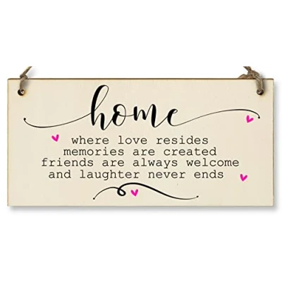 Handmade Wooden Hanging Wall Plaque Home Love Resides Memories Friends Laughter Decorative Sentimental Sign Family