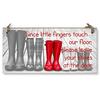 Handmade Wooden Hanging Wall Plaque Little Fingers Touch Floor Take Shoes Off at the Door Cute Fun Hallway Sign
