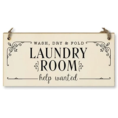 Handmade Wooden Hanging Wall Plaque wash.dry.fold Laundry Room Help Wanted Funny Decorative Sign Gift for Mum