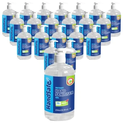 HandSafe 24 x 250ml Medical Grade Hand Sanitiser Gel Multipack from Handsafe, Kills 99.9%+ of Bacteria & Viruses, Alcohol Formula, Dermatologically Tested