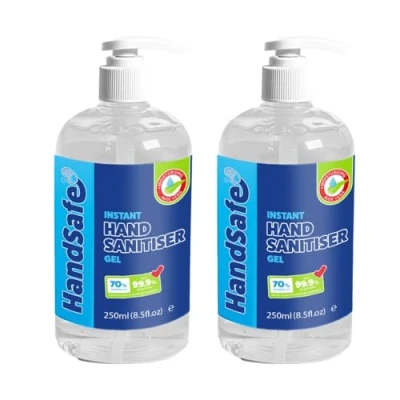 HandSafe Sanitiser Gel 500ml Hospital Grade Hand Sanitiser, Kills 99.9%+ Bacteria & Viruses, Conveniently Supplied in 2 x250ml Pump Bottles, Alcohol Based Anti Bacterial