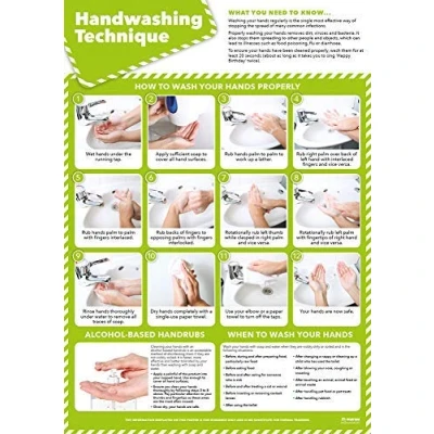 Handwashing Technique Health and Safety Posters Laminated Gloss Paper 850mm x 594mm (A1) Office Commercial Wall Charts Education by Daydream