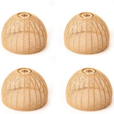 Handwoven Dome Pendant Lampshade Natural Rattan Style Ceiling Light Shade in Tight Weave Design Boho, Coastal & Minimalist Home Decor (H 23cm x W 29cm) Pack of 4