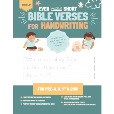 Handwriting Practice Book for Kids (Even More Short Bible Verses): Penmanship and Writing Workbook Pre K, Kindergarten, 1st, 2nd Grade: Learn ... Kids; Homeschool