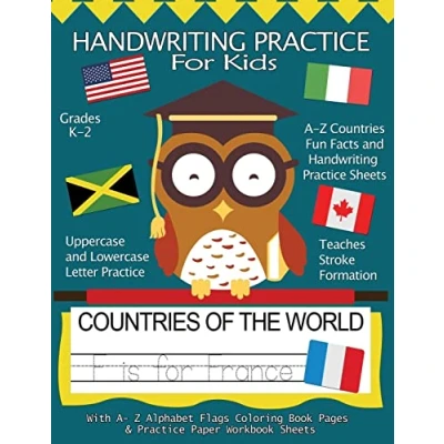 Handwriting Practice For Kids : Countries of the World With Workbook Sheets and A Z Alphabet Flags Coloring Book Pages: Pre K, Kindergarten, Age ... Volume 7 (Handwriting Workbooks)