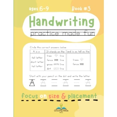 Handwriting Practice Made Fun: Focus on Size and Placement Penmanship Writing Workbook with Letters Numbers for 1st, 2nd, 3rd Grade