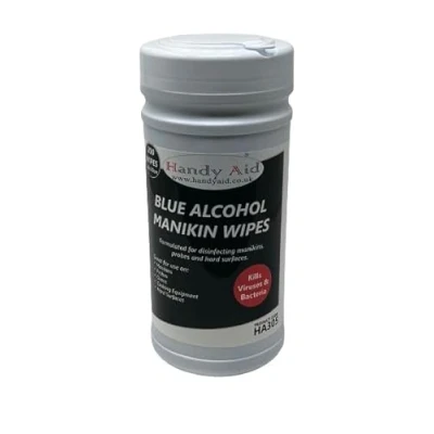 Handy Aid Disposable Manikin Wipes Large 20 x 20cm Tub of 200 Probe Hard Surfaces Disinfectant 70 80% Alcohol