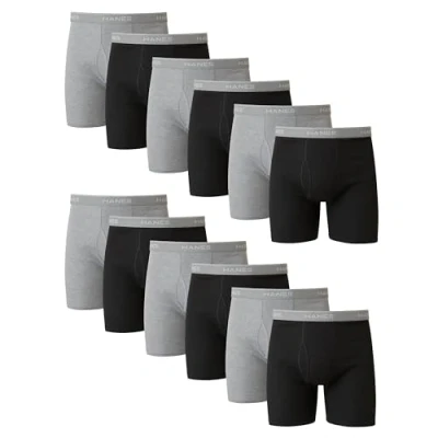QUALITY FABRIC - Our men's boxer briefs are crafted from soft, ringspun cotton. Grey boxer briefs are made from a cotton-rich blend. VALUE PACK- Each value pack includes twelve pairs of black and grey boxer briefs. IMPROVED WAISTBAND - Men's underwear with an improved Comfort Flex waistband now adjusts to fit you. KEEP YOUR COOL - Cool Comfort fabric wicks moisture to keep you cool and comfortable. STAYS IN PLACE - No-ride-up construction means your underwear should stay firmly in place. TAG FREE - Because who has time for scratchy tags?