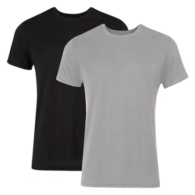 Hanes Men's Originals Supersoft T Shirt, Viscose from Bamboo Undershirt, Black/Grey, 2 Pack, Large