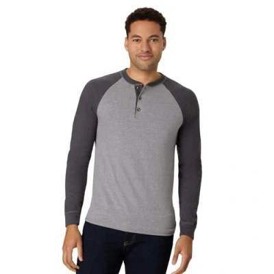 Hanes Men's T Shirts, BeefyT Henley Cotton Long Sleeve Oxford Gray/Slate Heather, Medium