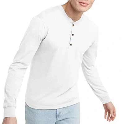 Hanes Originals Men's Henley Long Sleeve Shirt, White, S
