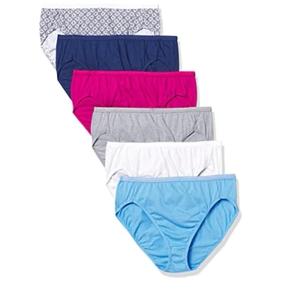 MOISTURE-WICKING FABRIC – Our everyday panties are made from a ringspun, preshrunk 100% cotton that wicks away moisture and retains its shape after washing. VALUE YOU EXPECT – Each women's underwear value pack includes 6 pairs of high-waisted panties. NO-RIDE-UP, HIGH-CUT FIT – Designed with a full-coverage fit, they have leg bands that are designed to stay in place. COMFORT YOU DESERVE – A stretchy waistband keeps your panties from pinching and binding. SIZE OPTIONS – From women's underwear sizes 5-10, our multiple size options make shopping simple..NO TAG, NO ITCH - Tagless design for even more comfort..EASY CARE – Throw them right in the washing machine on laundry day.