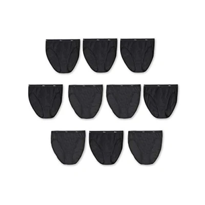 Hanes Women's Cotton 10 Pack Underwear, Black, Large