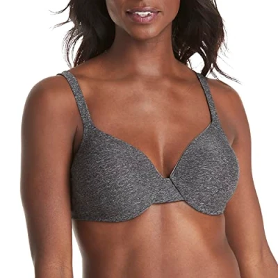 Hanes Women's, Low Cut Underwire T Shirt Bra, Convertible Straps, Black Heather 2, 40C