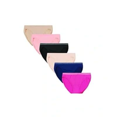 MOVES EVERY WAY YOU DO - ComfortFlex Fit 4-way stretch fabric moves effortlessly in every direction. THE BIKINI SILHOUETTE YOU WANT - Moderate coverage front and back with a lower waist and hi-cut legs to complement today's fashions. SLEEK, SMOOTH, SEAMLESS - A no-pinch waist, no side seams and no-ride-up leg openings create the smooth look you want, front and back. STOCK-UP CONVENIENCE - Available in a 6-pack for easy shopping..QUALITY FABRIC - Hanes microfiber bikini panties are made of 85% polyester/15% spandex..KEEP YOUR COOL - Moisture-wicking fabric keeps you cool and dry all day..EASY MACHINE WASHING - Throw your women's underwear in the washer on laundry day. International products have separate terms, are sold from abroad and may differ from local products, including fit, age ratings, and language of product, labeling or instructions.