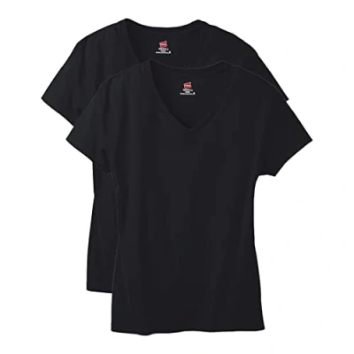 Hanes Women's Perfect T V Neck Shirt, Cotton Short Sleeve Tee, 1 Or 2 Pack, Black, XX Large (Pack of 2)