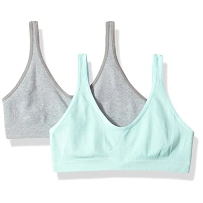 Hanes Women's Seamless ComfortFlex Fit Cozy Pullover Bra 2 Pack Training, Heather Grey/Blue Spearmint, M (Pack of 2)
