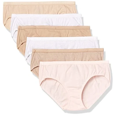 Hanes Womens 6 Pack Breathable Cotton Hipster Panty, Soft Taupe, White, Nude, Light Buff, Nude Heather, Sugar Flower Sweet Dot,
