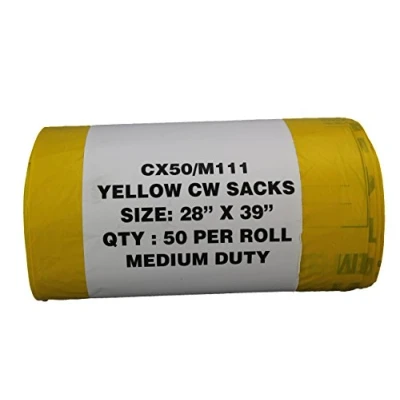Hanfare CX50/M111 Waste Sack Roll, Medium Duty, 90 L/5 kg, Yellow (Pack of 50)
