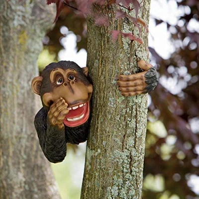 Hanging Peeking Wise Monkey Garden Ornament Chimpanzee Sculpture Tree Hugger statue Decor GIFT (Calling Monkey)