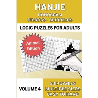 Hanjie Puzzle Book for Adults, Volume 4: 50 Logic Picture Puzzles from Easy to Hard: Themed edition: Animal Nonograms (Hanjie Books Adults: ... known as Picross Griddlers)