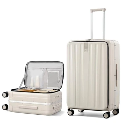 Hanke Carry On Suitcase Cabin with Wheels & Front Opening, 20in Spinner Built in Locks Aluminum Frame PC Hardside Rolling Lightweight Travel Bag Ivory White